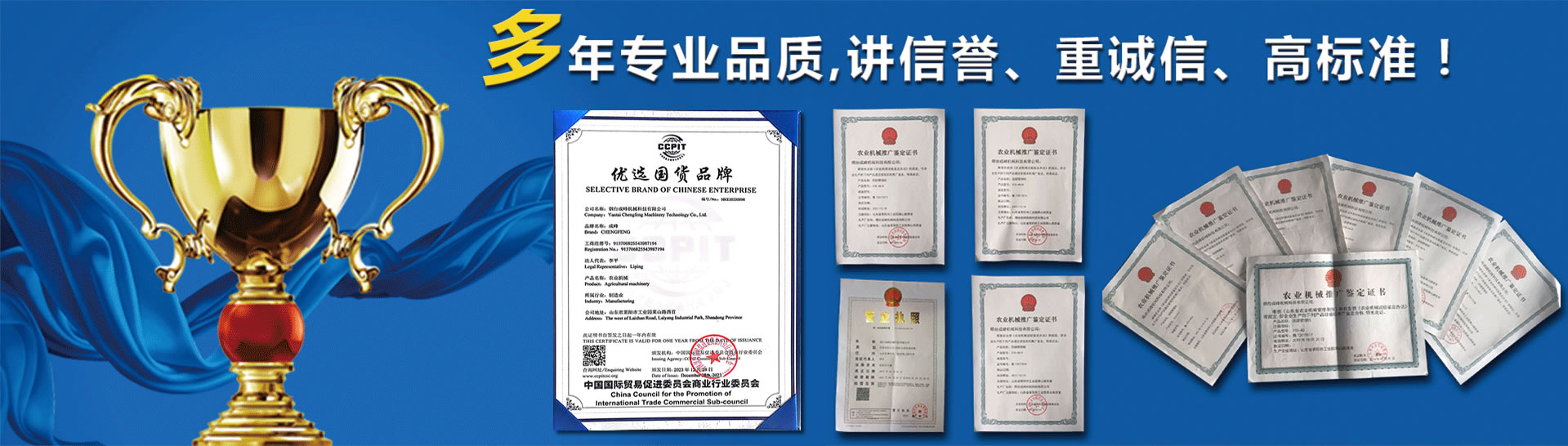 點(diǎn)擊進(jìn)入>煙臺(tái)成峰機(jī)械科技有限公司,成立于2010年4月,是農(nóng)林機(jī)械專業(yè)生產(chǎn)廠 家。十余年專注果園管理機(jī)械、大棚機(jī)械的研發(fā)、生產(chǎn)與銷售。產(chǎn)品暢 銷全國三十一個(gè)省市、自治區(qū),60%的產(chǎn)品出口歐、美、日、韓等多個(gè)國家。高新技術(shù)企業(yè),有經(jīng)驗(yàn)豐富的產(chǎn)品研發(fā)團(tuán)隊(duì),有十款產(chǎn)品通過國家農(nóng)機(jī)推廣鑒定,享有國家農(nóng)機(jī)補(bǔ)貼。公司現(xiàn)有激光切割機(jī)械、機(jī)器人焊 接、數(shù)控加工設(shè)備、表面處理設(shè)備數(shù)十臺(tái),具備萬臺(tái)以上農(nóng)林機(jī)械的生 產(chǎn)能力。目前我們與山東農(nóng)業(yè)大學(xué),山東科技大學(xué)等多所高校達(dá)成產(chǎn)學(xué)研合作, 與山東農(nóng)機(jī)研究院、農(nóng)科院等多家科研單位達(dá)成產(chǎn)品研發(fā)合作,為傳統(tǒng)農(nóng)機(jī)的智能化賦能插上翅膀。我們遵循誠信、創(chuàng)新、合作、共贏的經(jīng)營理念,在可持續(xù)發(fā)展的道路上 穩(wěn)步前行。 查看詳情>